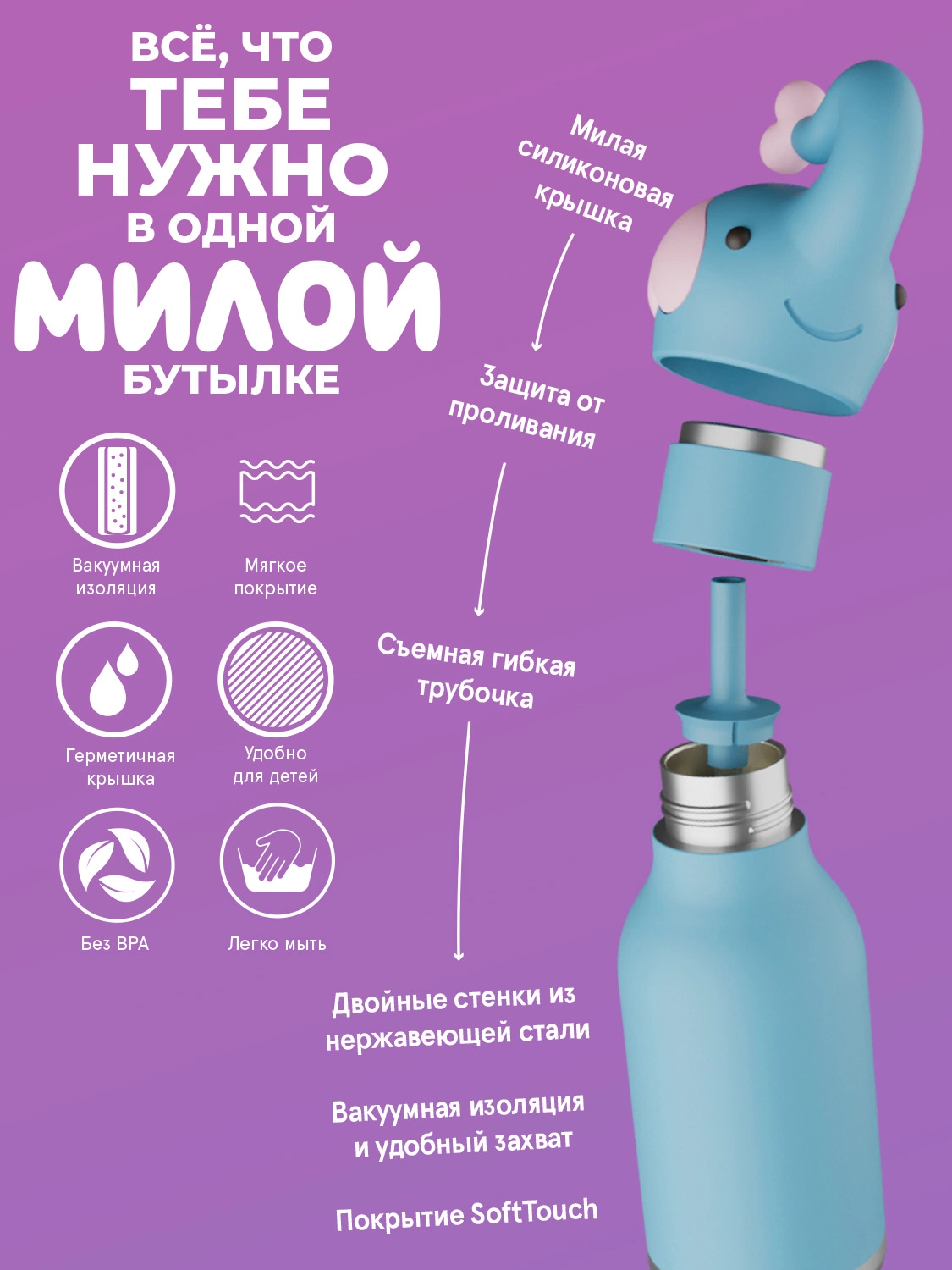 Bestie делают каждый день ярче и удобнее. Эргономичная форма с трубочкой позволяет легко поддерживать водный баланс, даже находясь в движении, а весёлый дизайн добавляет игривую нотку в ваш образ. Прочная термо-конструкция сохраняет напиток холодным, а сам аксессуар становится надёжным спутником в любых повседневных ситуациях. Bestie — это не просто бутылочка, а яркий способ подчеркнуть свой характер.
