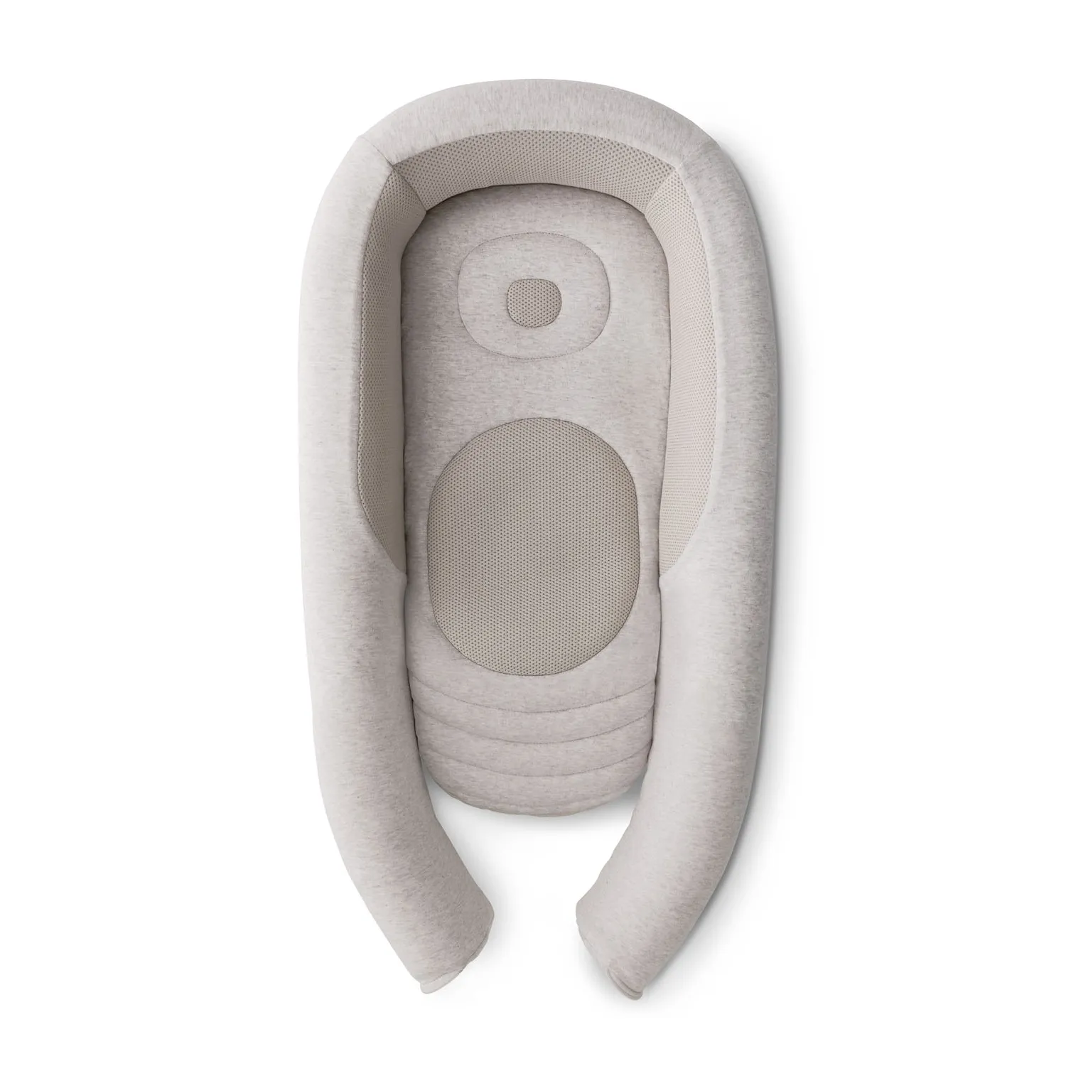 для моторного и когнитивного развития ребенка. Вы можете играть с малышом с первых недель и до 8 месяцев. Форма кокона обеспечивает комфортное положение на спинке, а также позволяет крохе спокойно переворачиваться и ползать.