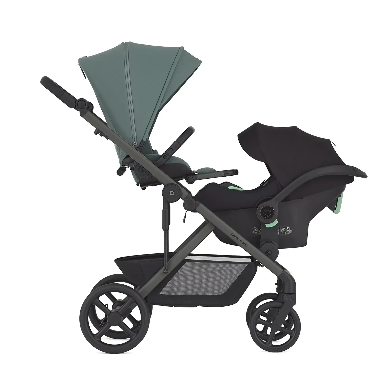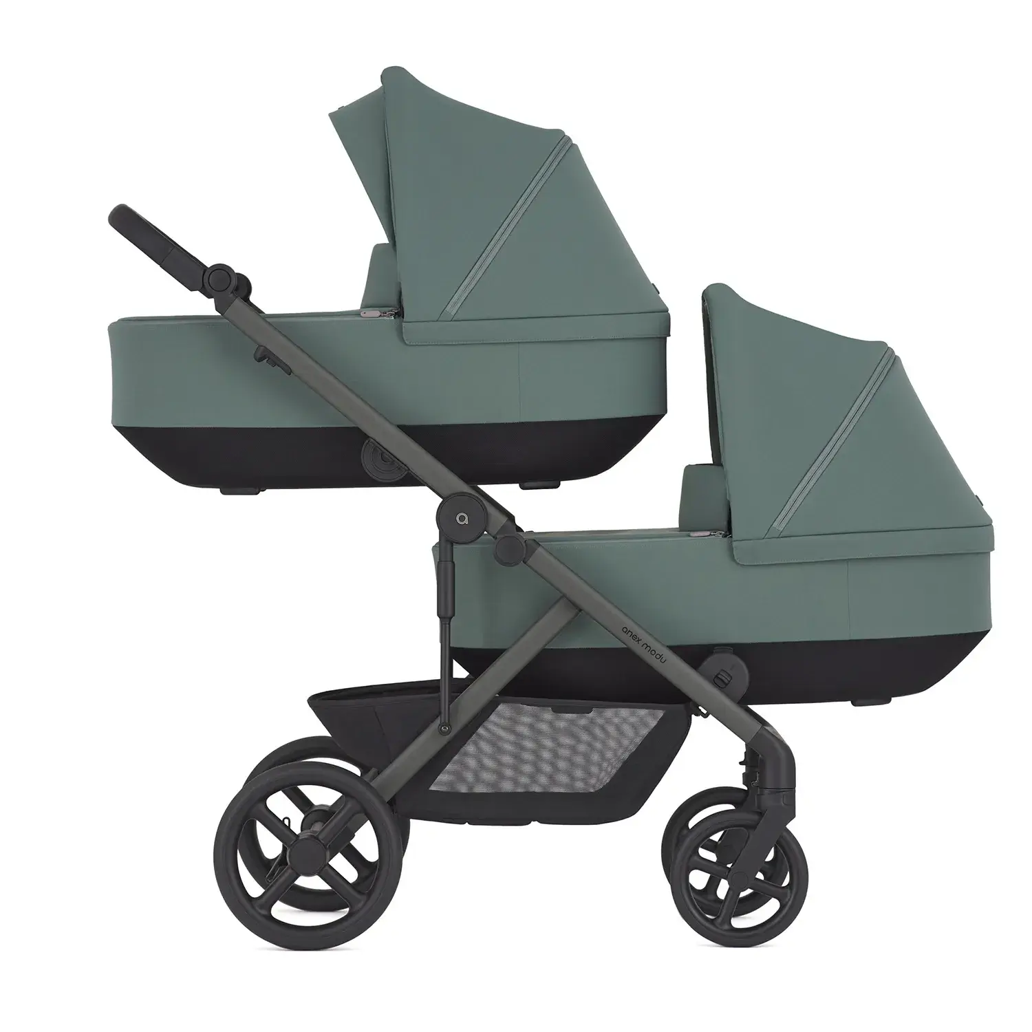 Одна рама, бесконечные возможности: от новорожденных до близнецов и братьев и сестер, от люльки для домашних животных до коляски — Modu адаптируется к любому возрасту и любым условиям, будь то в городе, на бездорожье, в путешествии на машине или самолете.