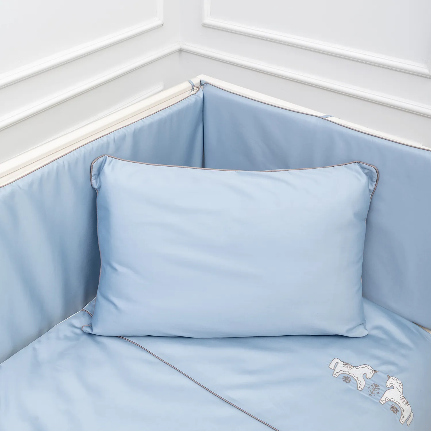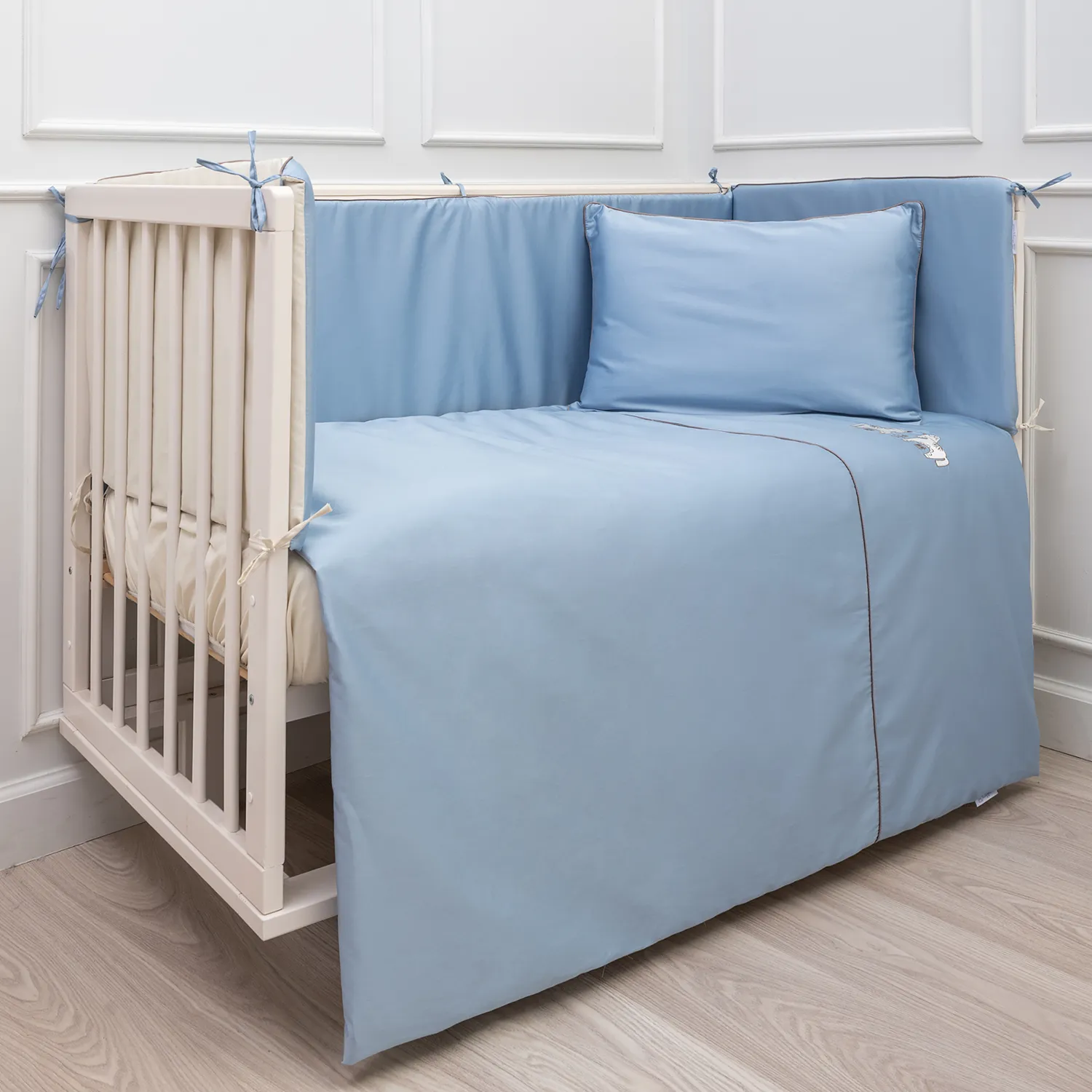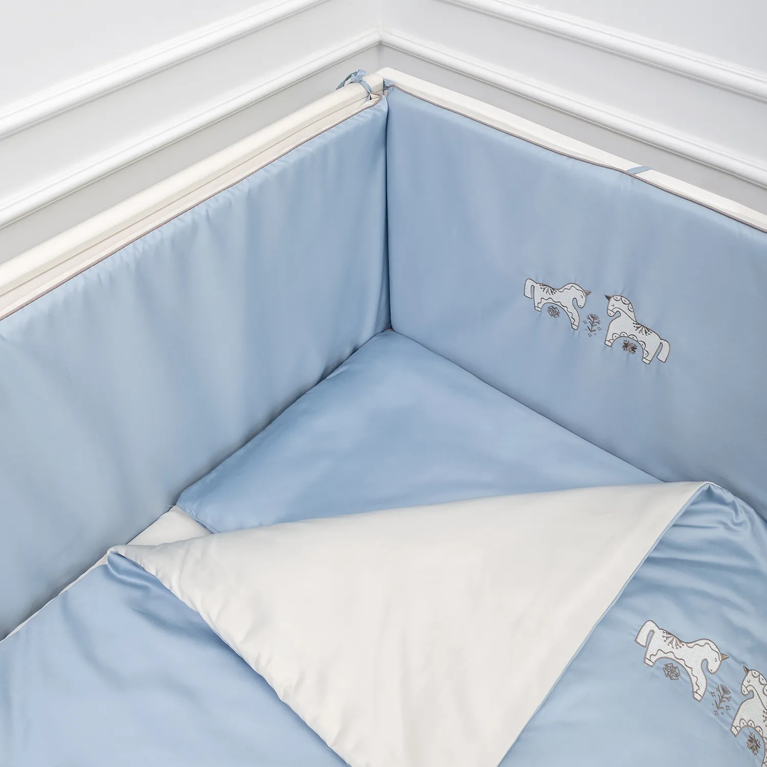 Коллекция "Коники-сны" — это про уют, эстетику и сны, в которые хочется возвращаться. Глубокие оттенки гармонично вписываются в интерьер детской, создавая атмосферу спокойствия и тепла. Коллекция выполнена из премиального сатина — нежного к телу, дышащего и износостойкого материала, который сохраняет форму и цвет даже после множества стирок. Минималистичная вышивка с лошадками — сердце этой коллекции. Именно эти добрые "коники" вдохновили на создание названия и стали символом спокойных снов и добрых историй, которые шепчет малышу мама. "Коники-сны" — когда хочется простоты, красоты и заботы без лишнего. В состав комплекта входят: Бортик из 4-х частей (360*40 см) со съемными чехлами, Одеяло 140*110 см, Подушка 60х40 см (бамбук 40%, холлкон 60%), Пододеяльник 146*112 см, Простыня на резинке 120*60*18 см. Ткань: шик-сатин, 100% хлопок
