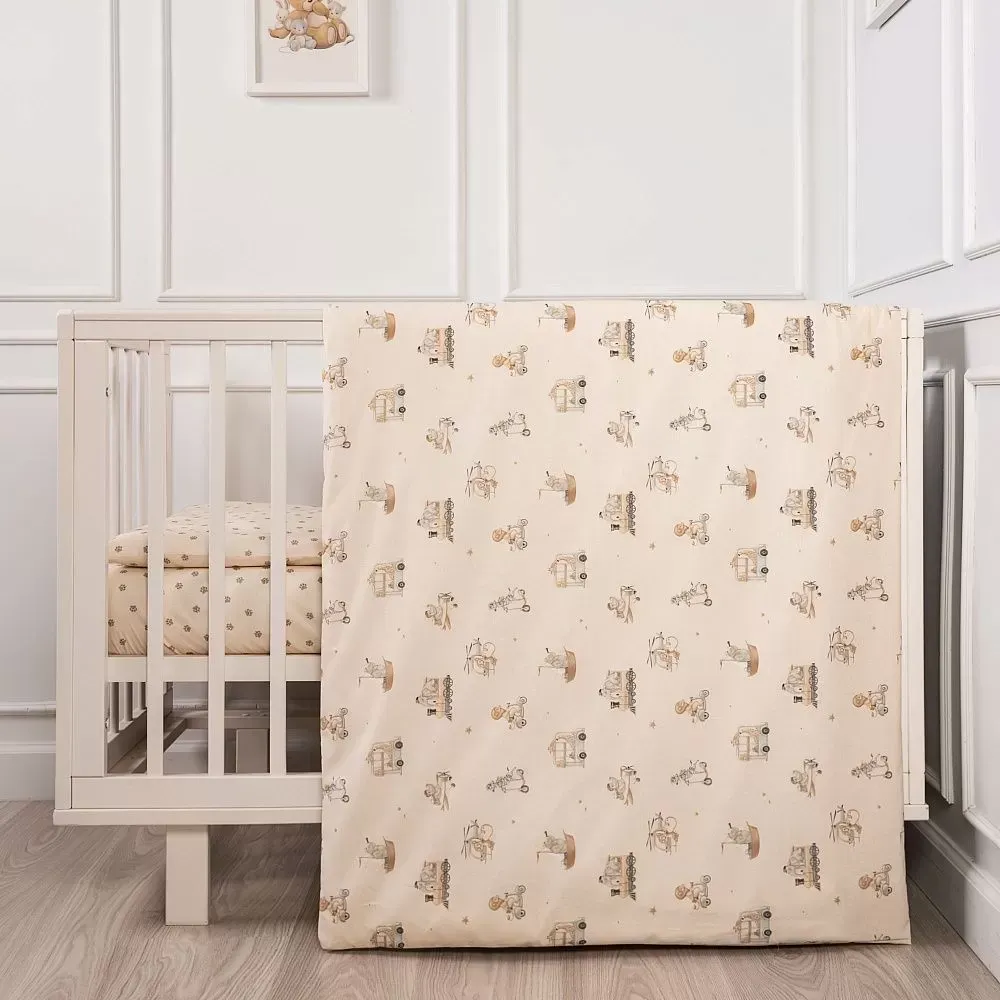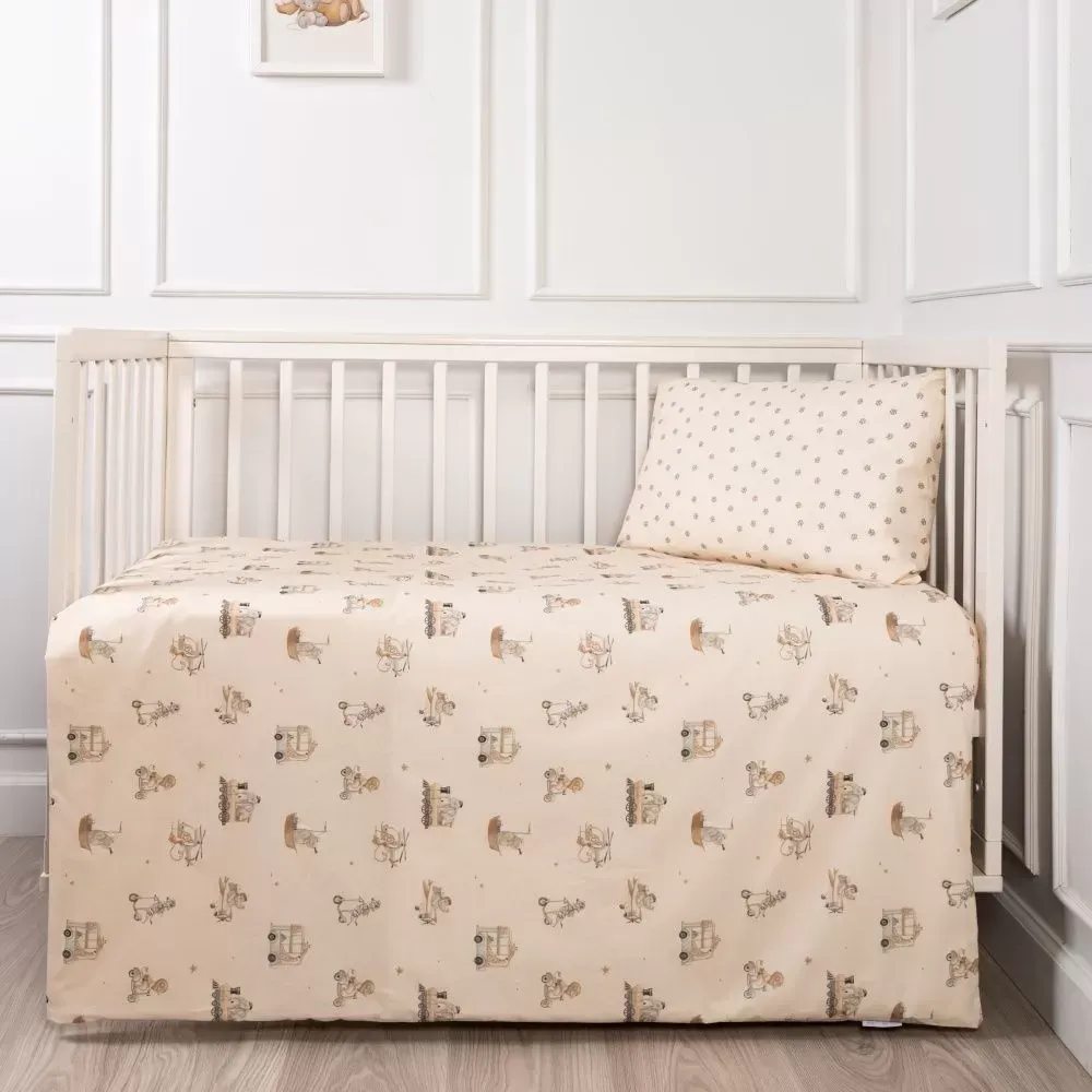 "Письмо другу" – это уникальное сочетание постельных принадлежностей для кроватки и книги с первой сказкой для вашего малыша. Герои авторской сказки оживают на тканях этого чудесного набора. А вам остаётся лишь открыть этот сказочный и добрый мир вашему ребенку. Комплект из 3 предметов: 1. Пододеяльник 144х112 см 2. Наволочка 60х40см 3. Простыня на резинке 120х60х18 см.