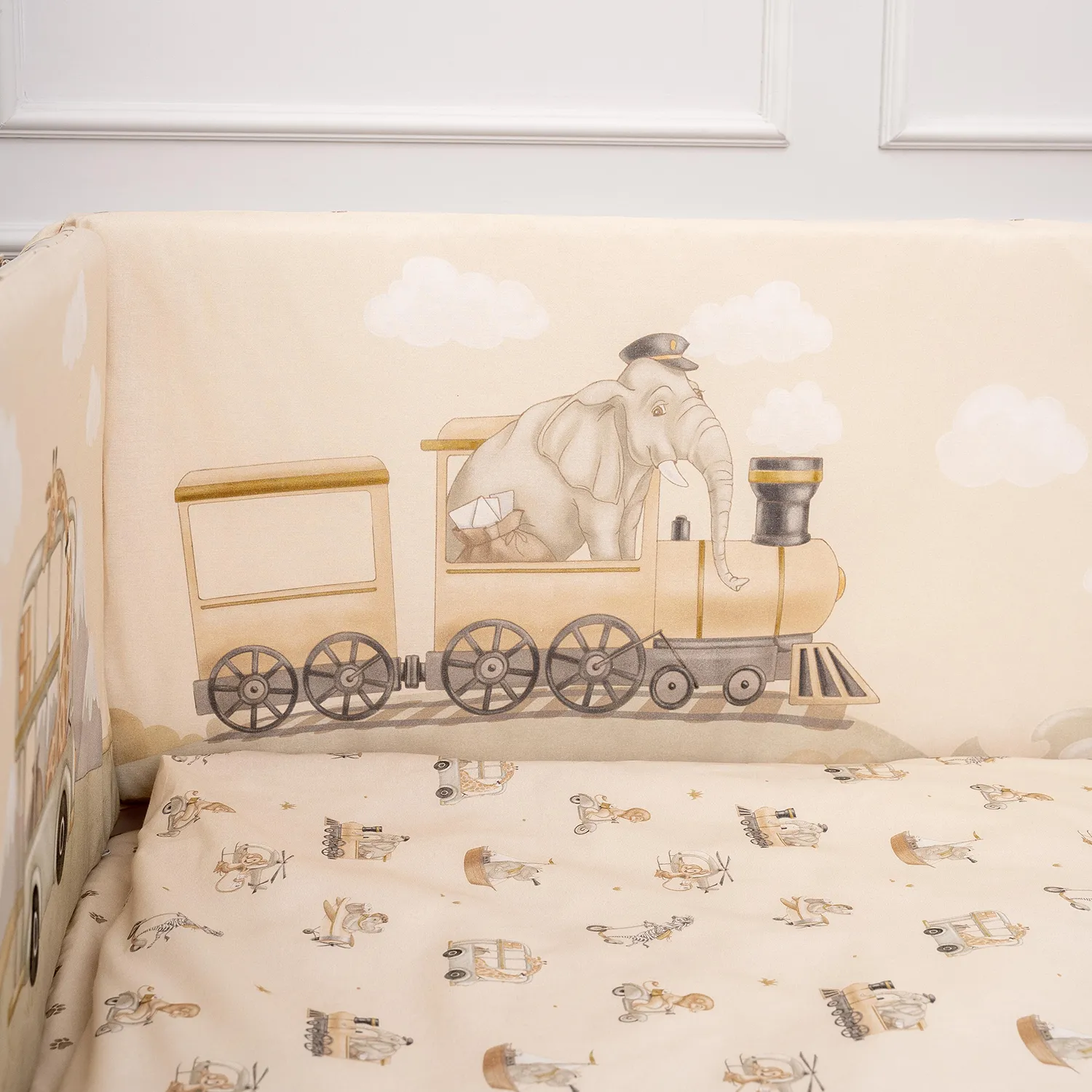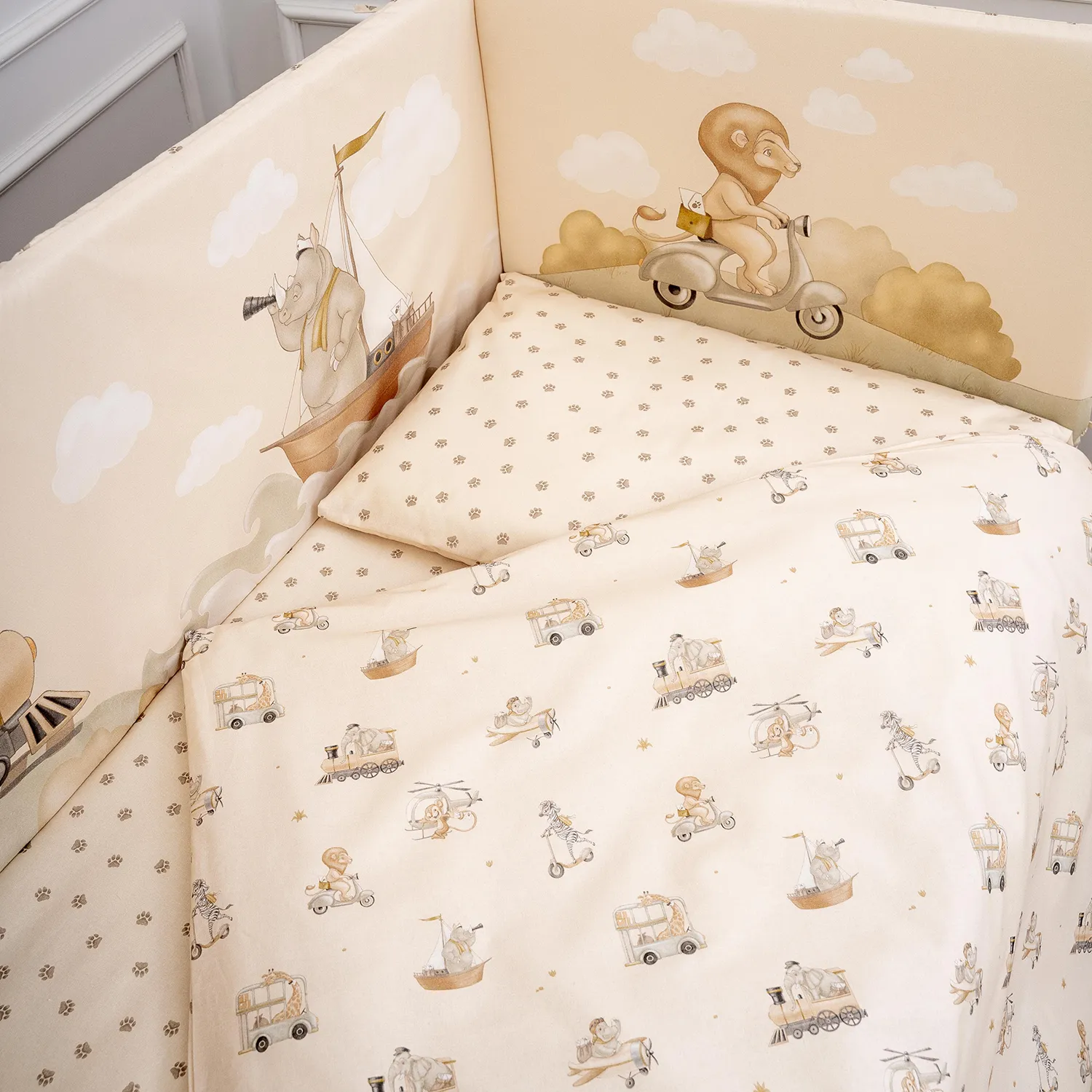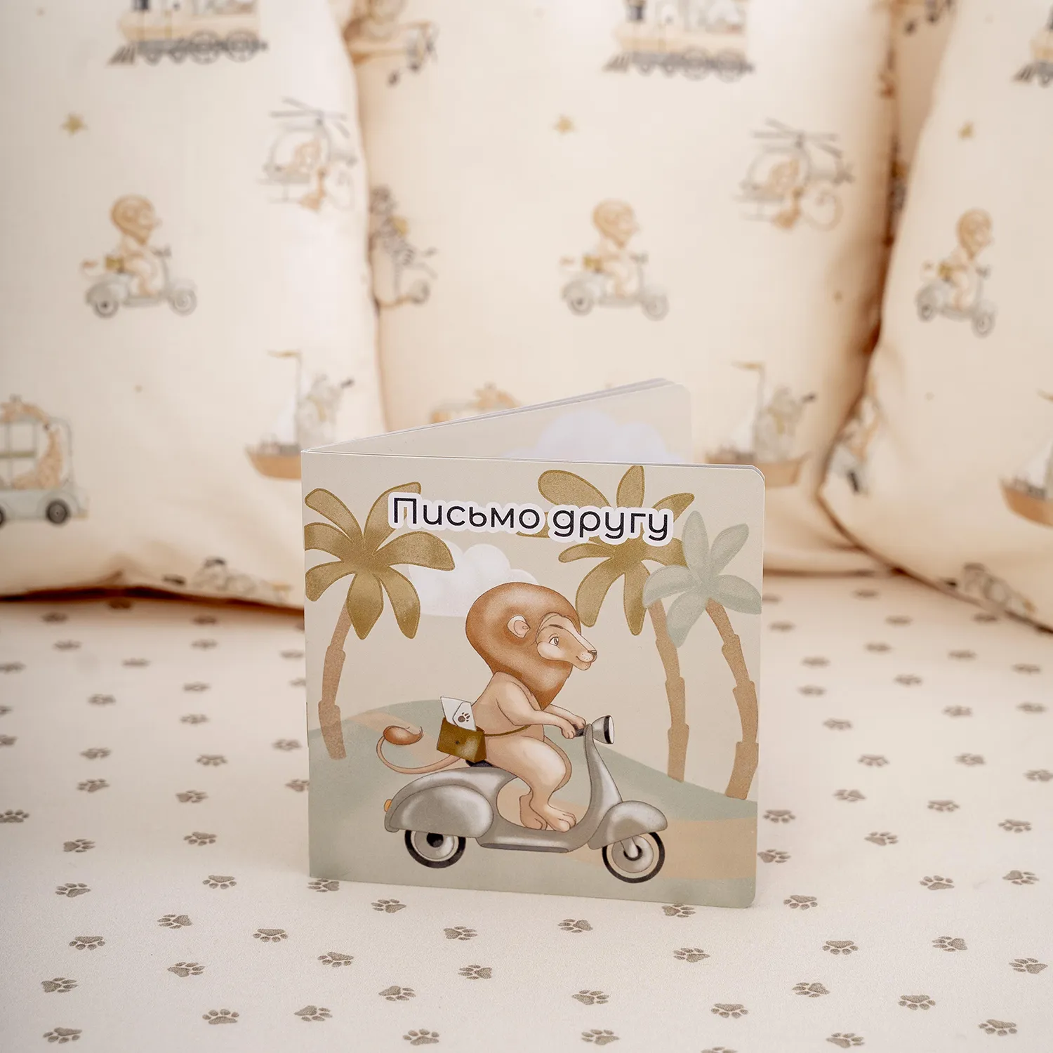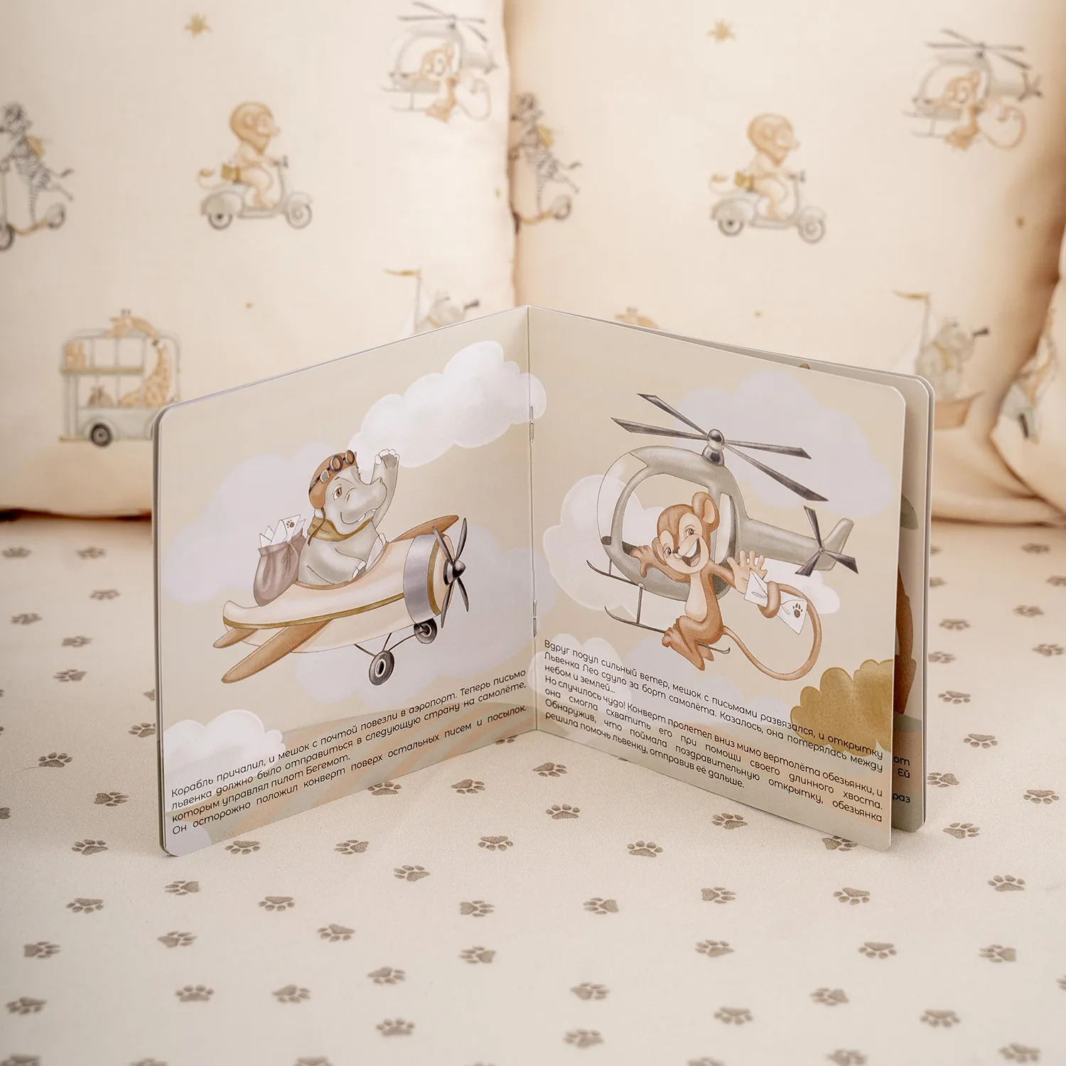 "Письмо другу" – это уникальное сочетание постельных принадлежностей для кроватки и книги с первой сказкой для вашего малыша. Герои авторской сказки оживают на тканях этого чудесного набора. А вам остаётся лишь открыть этот сказочный и добрый мир вашему ребенку. В состав комплекта входят: Бортик из 4-х частей (360*40 см) со съемными чехлами, Одеяло 140*110 см, Подушка 60х40 см (бамбук 40%, холлкон 60%), Пододеяльник 146*112 см, Простыня прямая 160*106 см, Книжка с авторской сказкой.