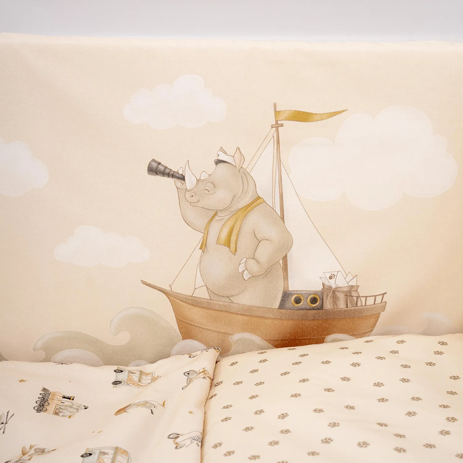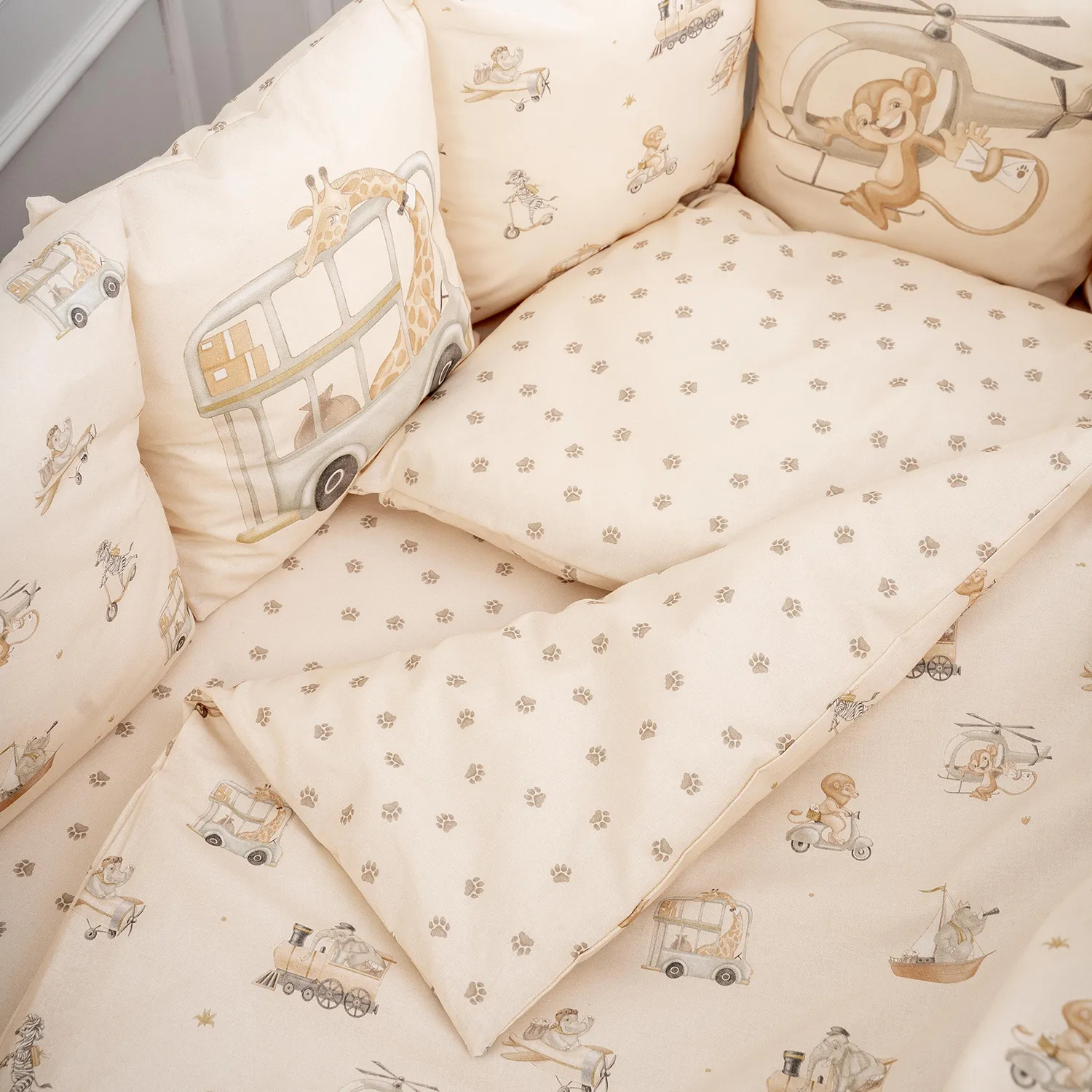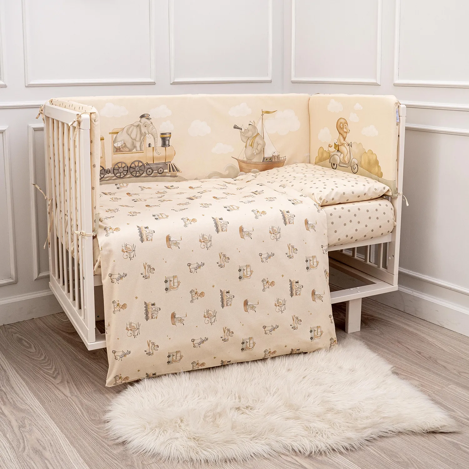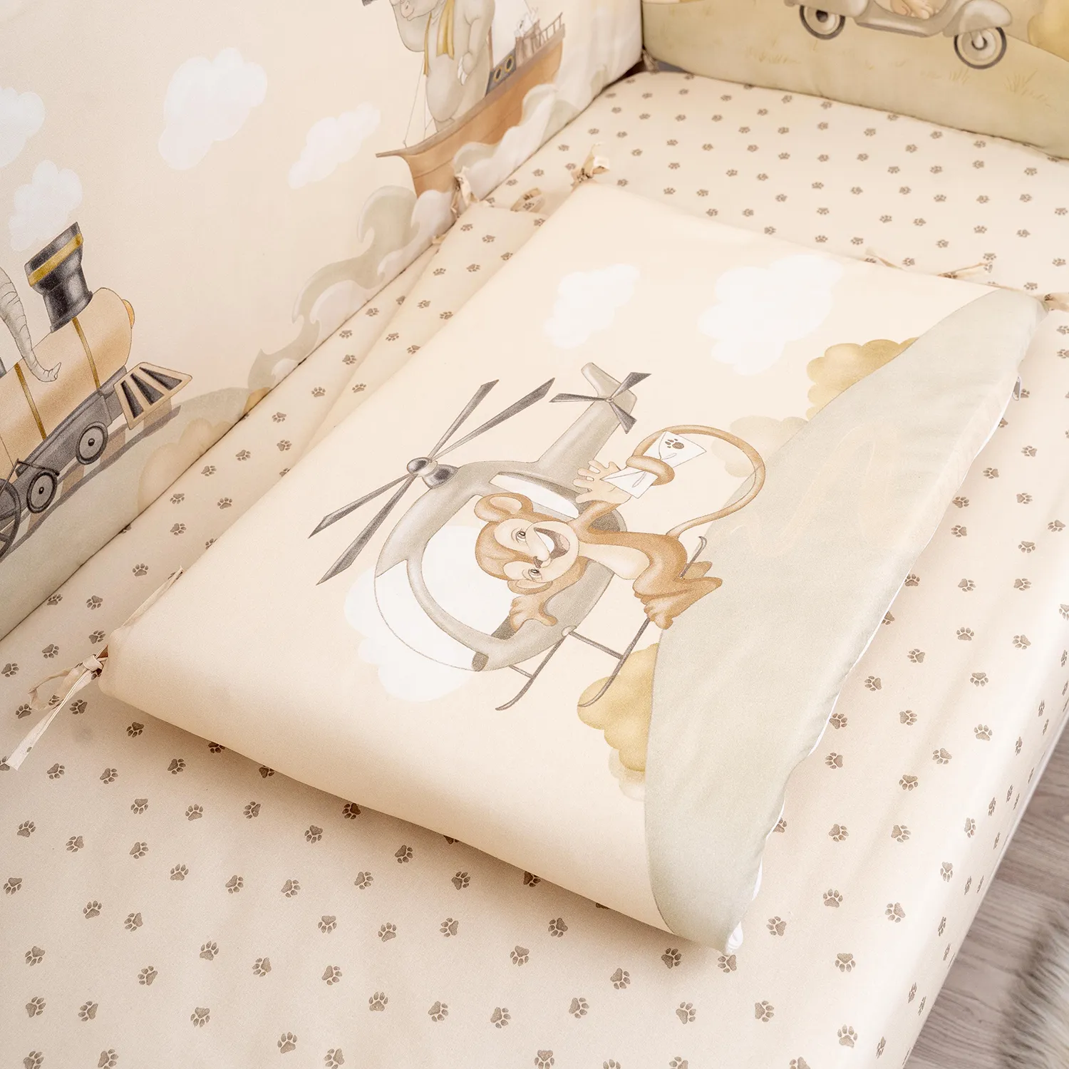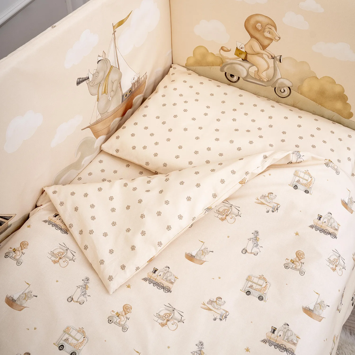 "Письмо другу" – это уникальное сочетание постельных принадлежностей для кроватки и книги с первой сказкой для вашего малыша. Герои авторской сказки оживают на тканях этого чудесного набора. А вам остаётся лишь открыть этот сказочный и добрый мир вашему ребенку. В состав комплекта входят: Бортик из 4-х частей (360*40 см) со съемными чехлами, Одеяло 140*110 см, Подушка 60х40 см (бамбук 40%, холлкон 60%), Пододеяльник 146*112 см, Простыня прямая 160*106 см, Книжка с авторской сказкой.