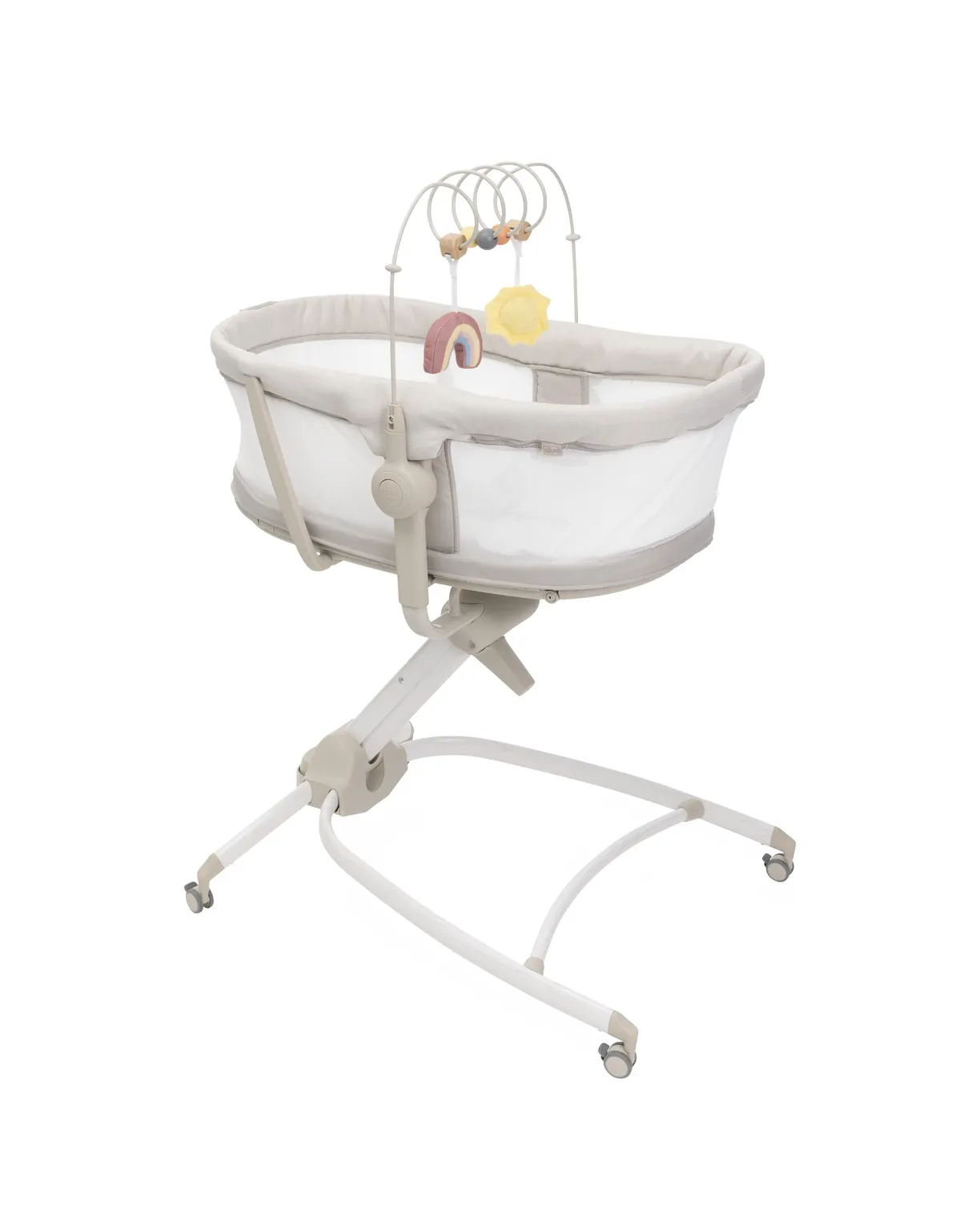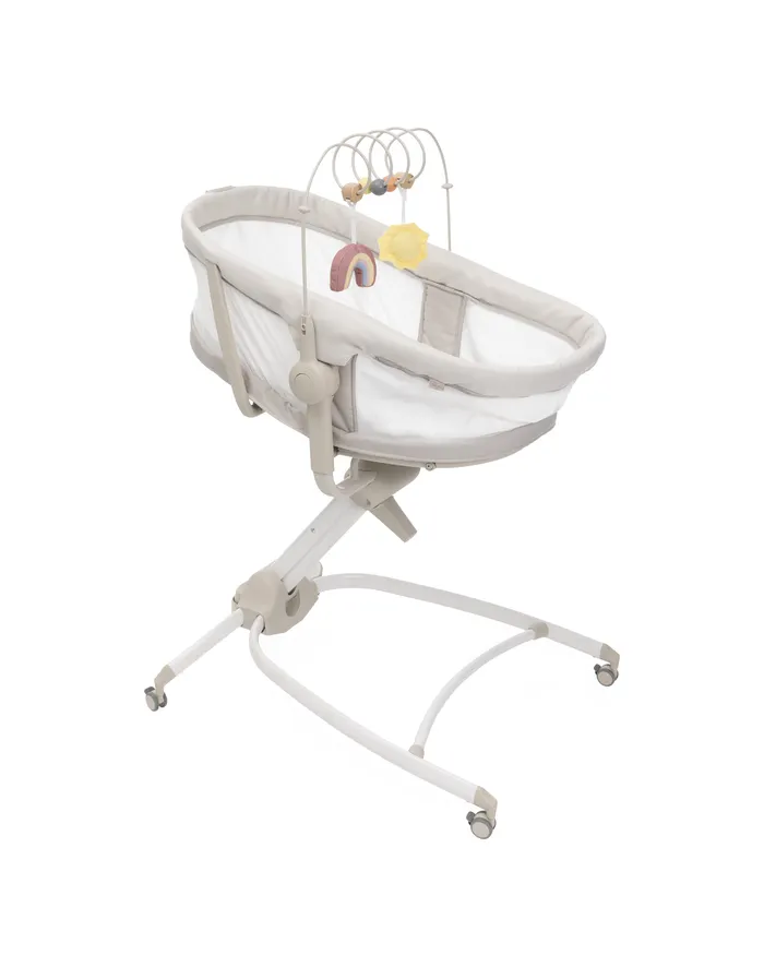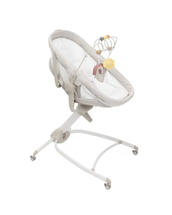 Она сочетает в себе сразу пять удобных решений: коляску, мобильную люльку, уютный шезлонг, удобный стульчик для кормлений и развивающее кресло для малышей постарше.