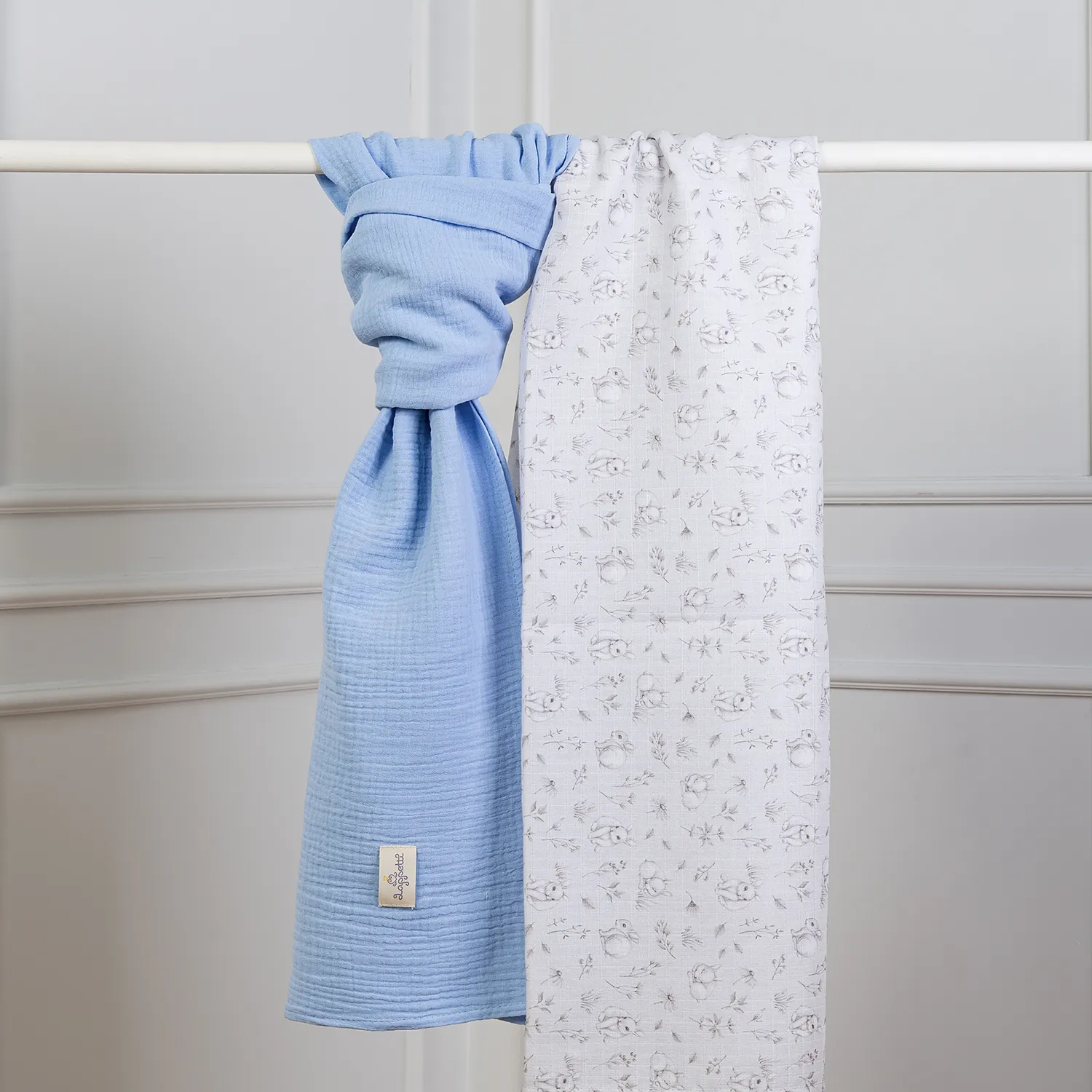 Набор из 2-х муслиновых пеленок - незаменимая вещь для новорожденных. Они мягкие, дышащие и нежные к коже малыша. Идеально подходят для пеленания, укрывания и кормления. Муслиновые пеленки легко стираются и быстро сохнут, что делает их удобными в использовании. Такой набор станет идеальным подарком для родителей. Состав: муслин 100% органический хлопок. Размер каждой пеленки: 130*90 см. Фирменная картонная упаковка.