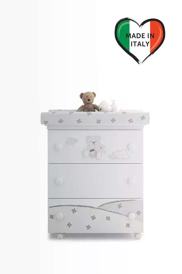 • Съемная пеленальная подушка с 2 приподнятыми боковинами безопасности, соответствующая европейским стандартам.
