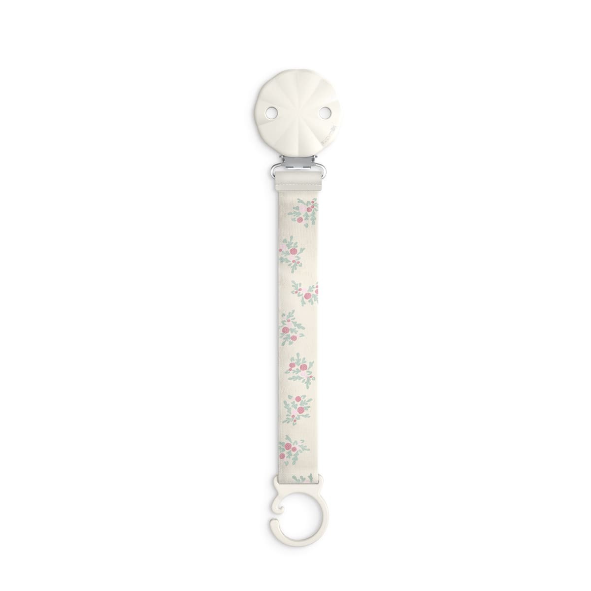 • Клипса с лентой для пустышки — незаменимый аксессуар на прогулках и во время игр: с помощью прищепки клипса крепится к одежде малыша, сумке или коляске, а значит пустышка не упадет на землю и не потеряется.