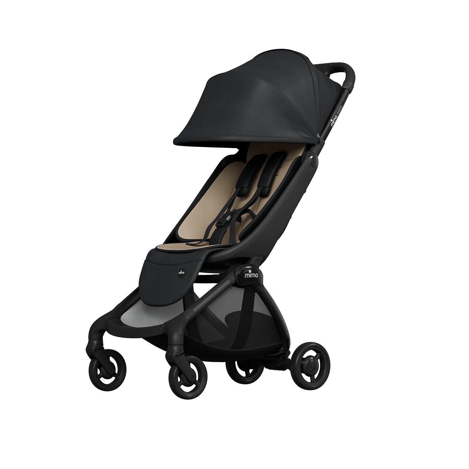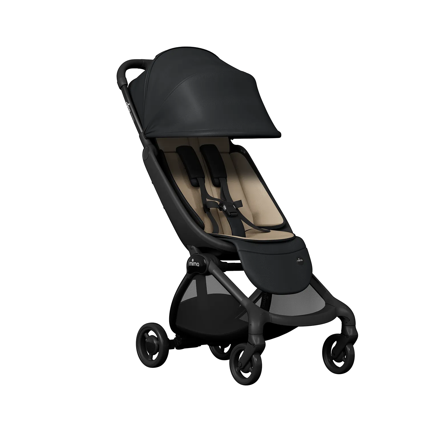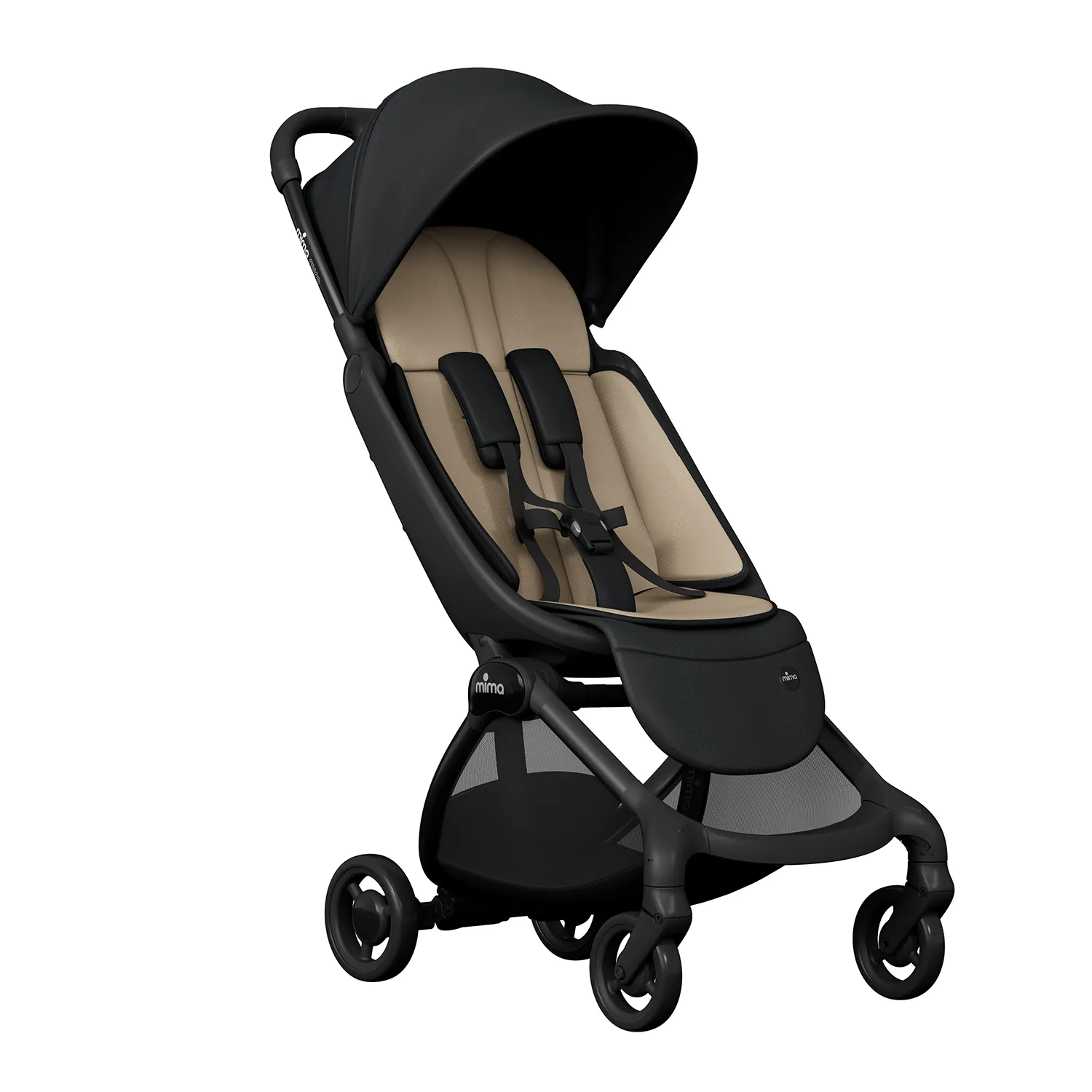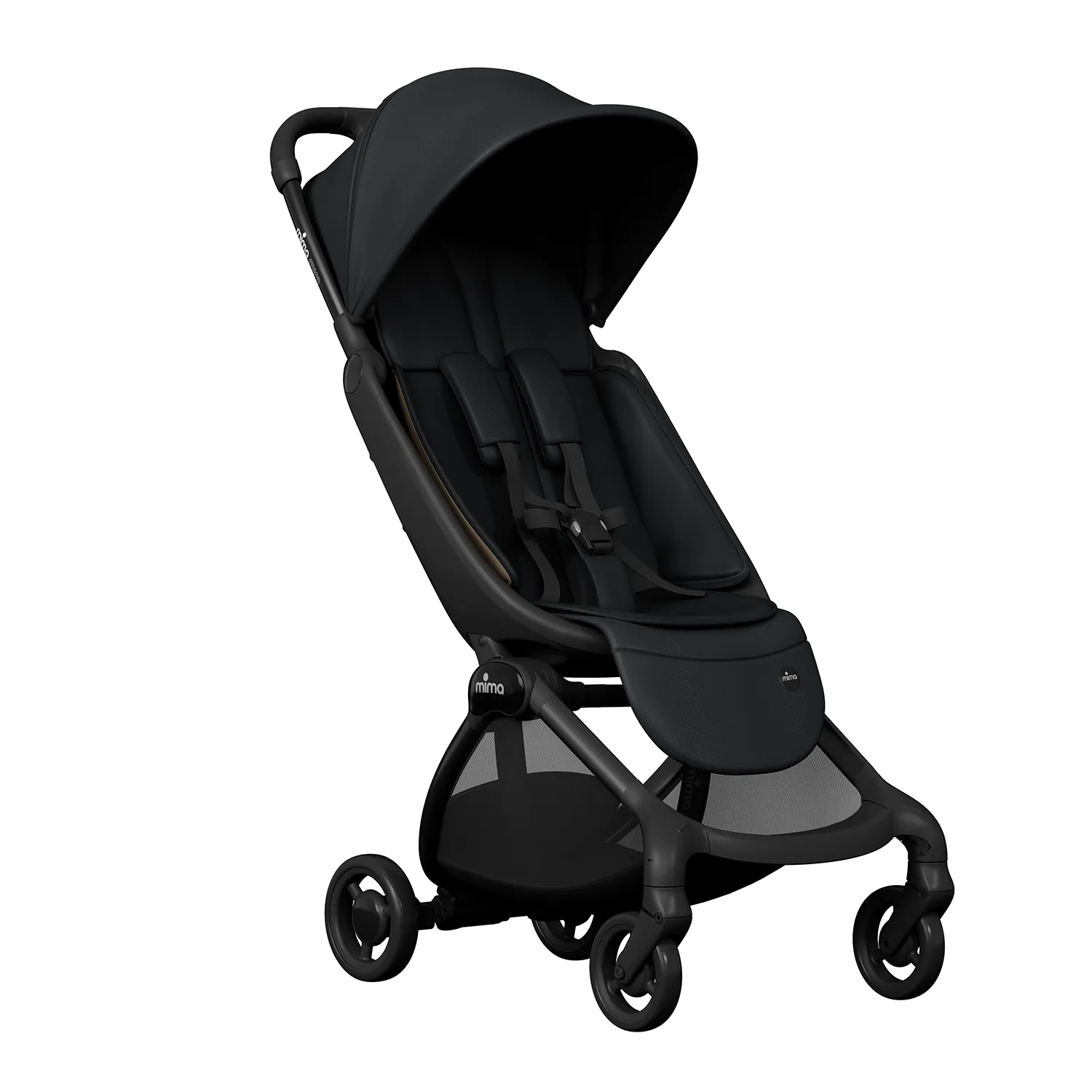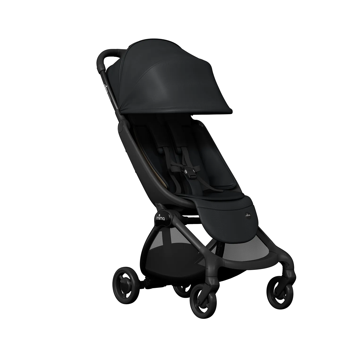 Алюминиевая рама · Ткань с защитой от ультрафиолета UPF 50+ или искусственная кожа · Магнитные 5-точечные ремни безопасности · Сертификат EN 1888