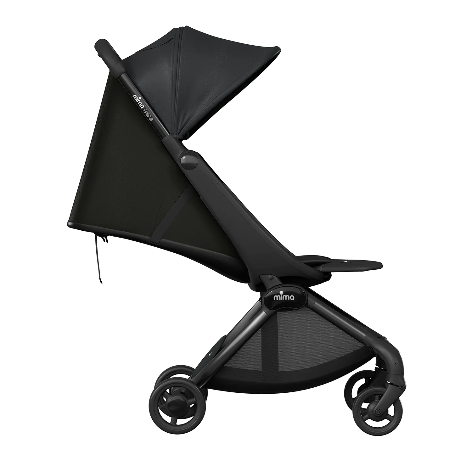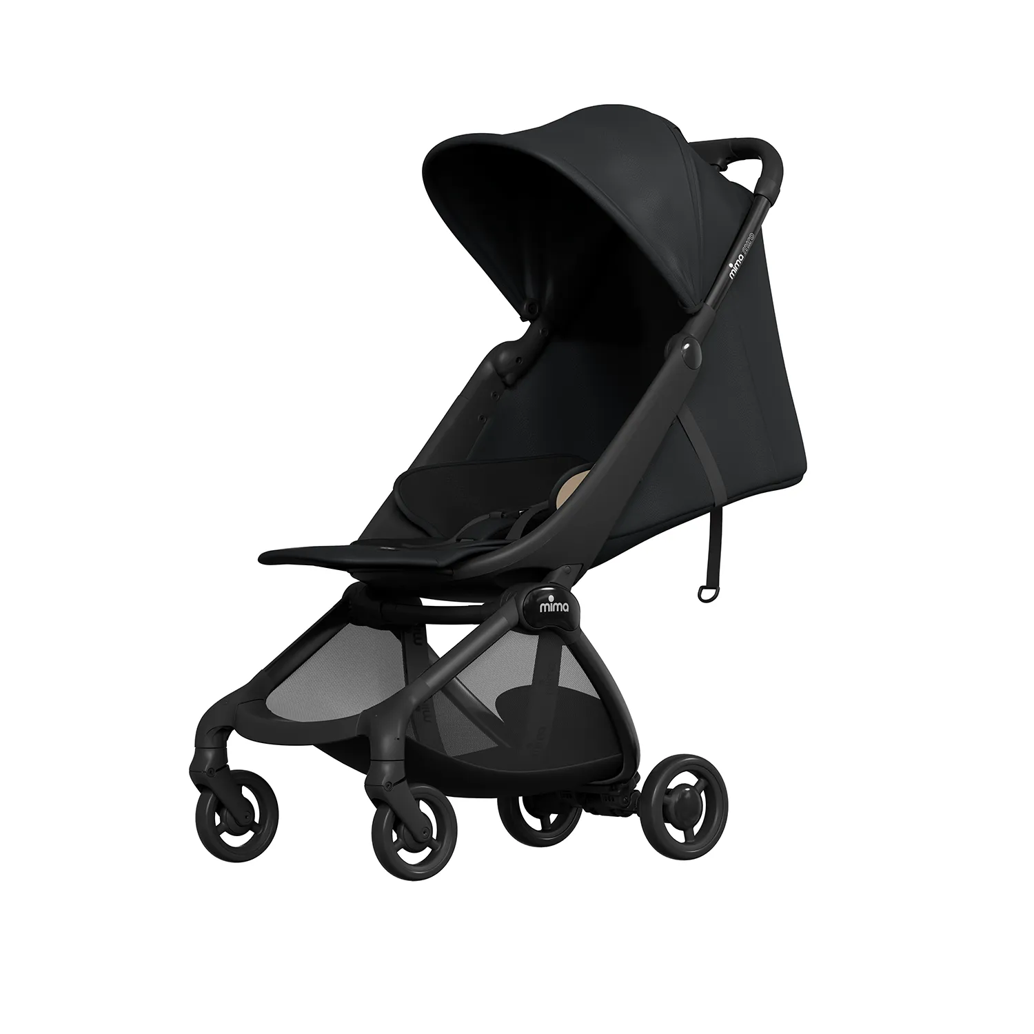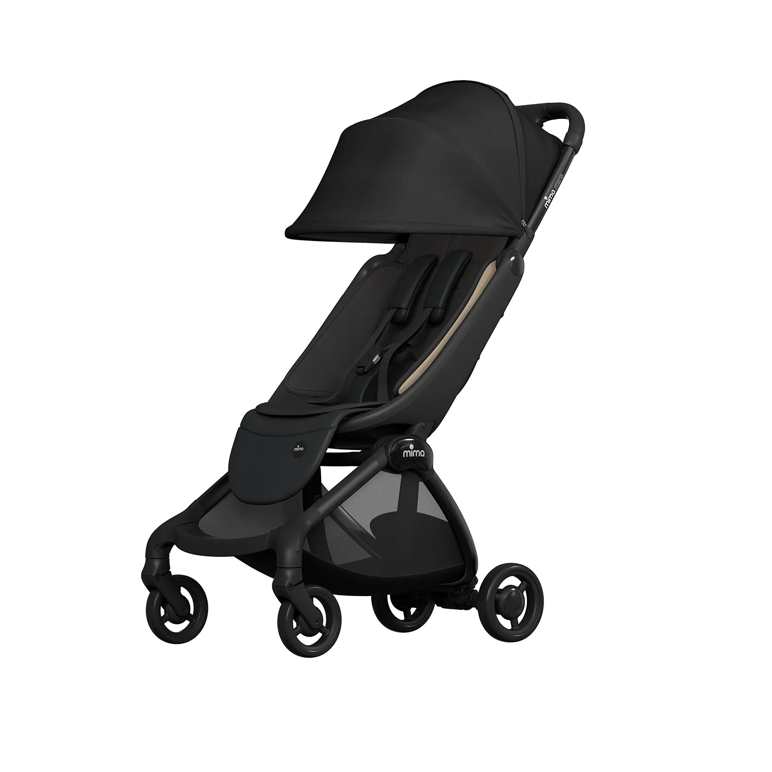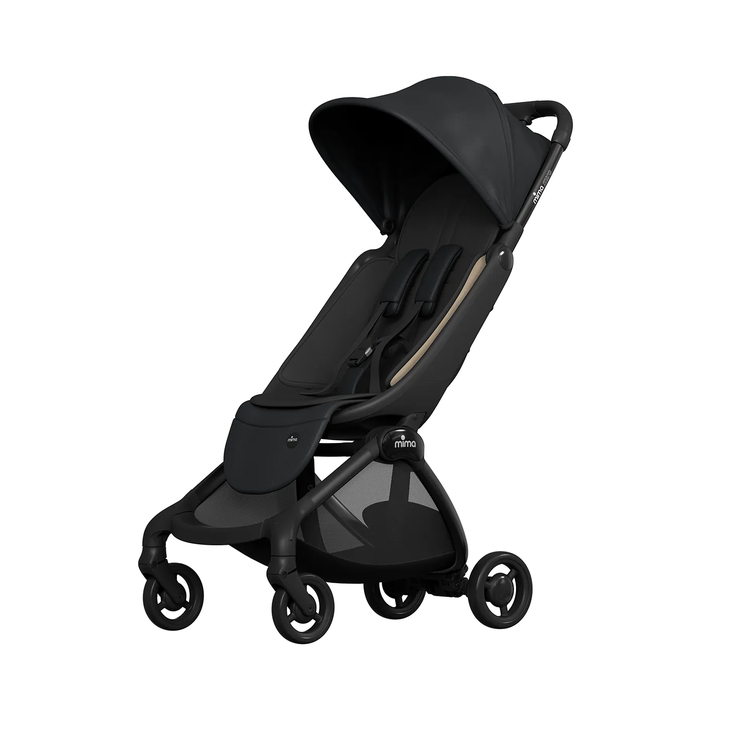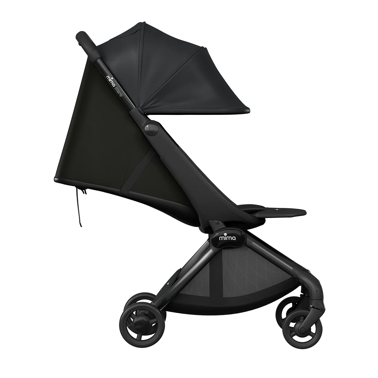 Алюминиевая рама · Ткань с защитой от ультрафиолета UPF 50+ или искусственная кожа · Магнитные 5-точечные ремни безопасности · Сертификат EN 1888