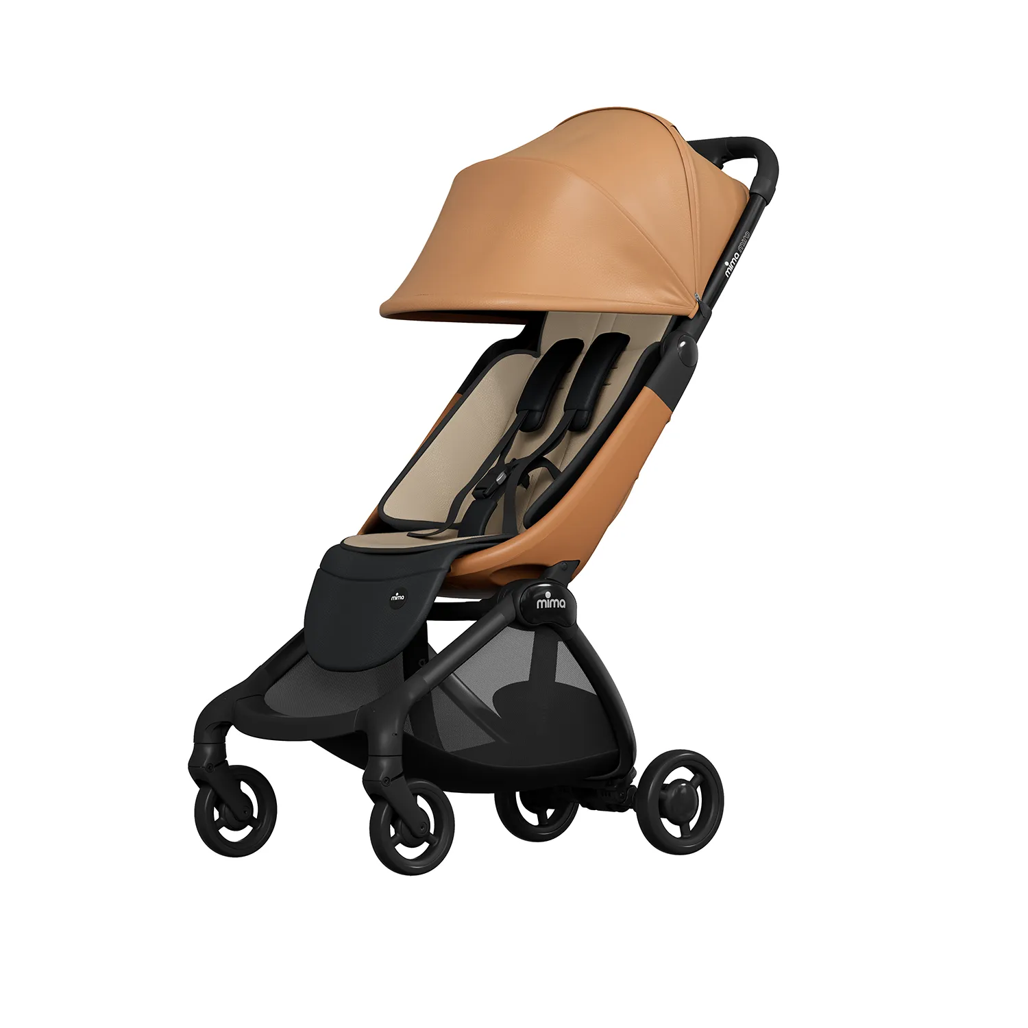 Алюминиевая рама · Ткань с защитой от ультрафиолета UPF 50+ или искусственная кожа · Магнитные 5-точечные ремни безопасности · Сертификат EN 1888