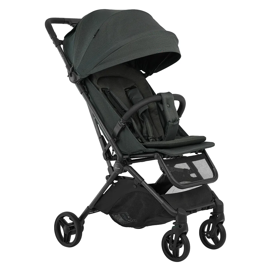 Комплектация: рама - Carbon, колеса PU, прогулочный блок, бампер, мягкий вкладыш с 3D-сеткой, чехол на ножки с двумя молниями, подстаканник, дождевик премиум-класса, москитная сетка, сумка для переноски, корзина, страховочный ремешок.