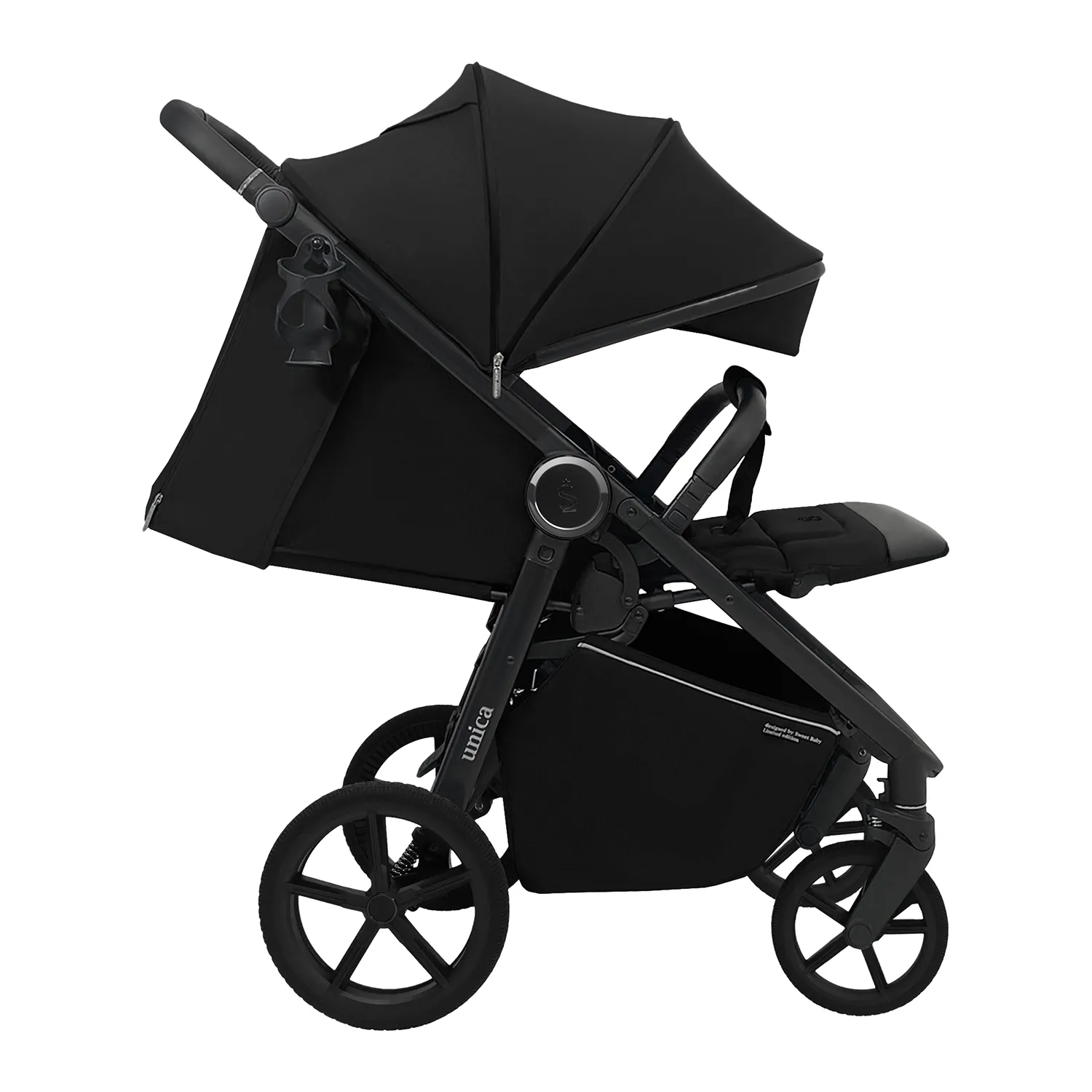 В комплекте с детской коляской SBL Unica: москитная сетка, сумка для мамы и фирменный подстаканник.