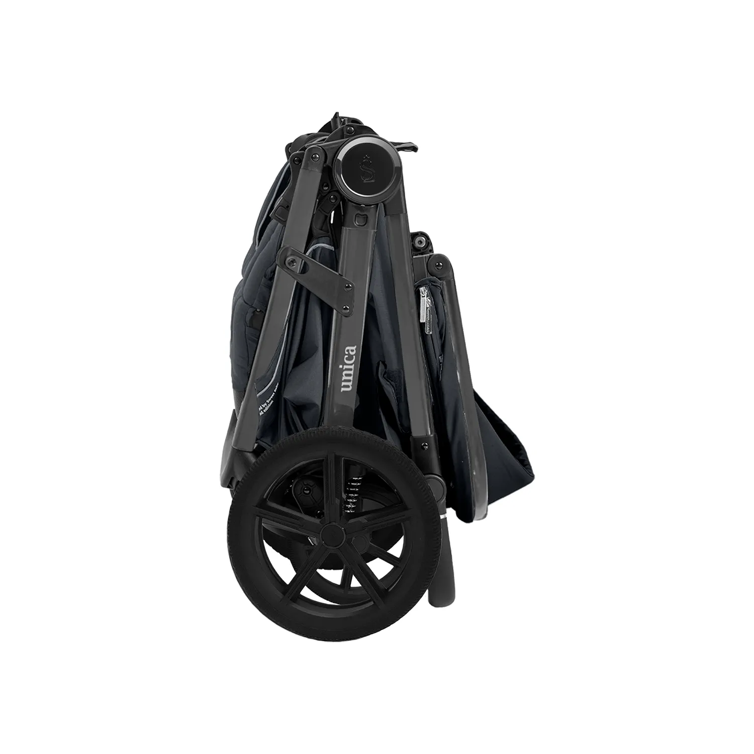 Система складывания одной рукой делает использование коляски еще более удобным. В собранном виде она устойчиво стоит без опоры, не пачкая обивку и ручку.