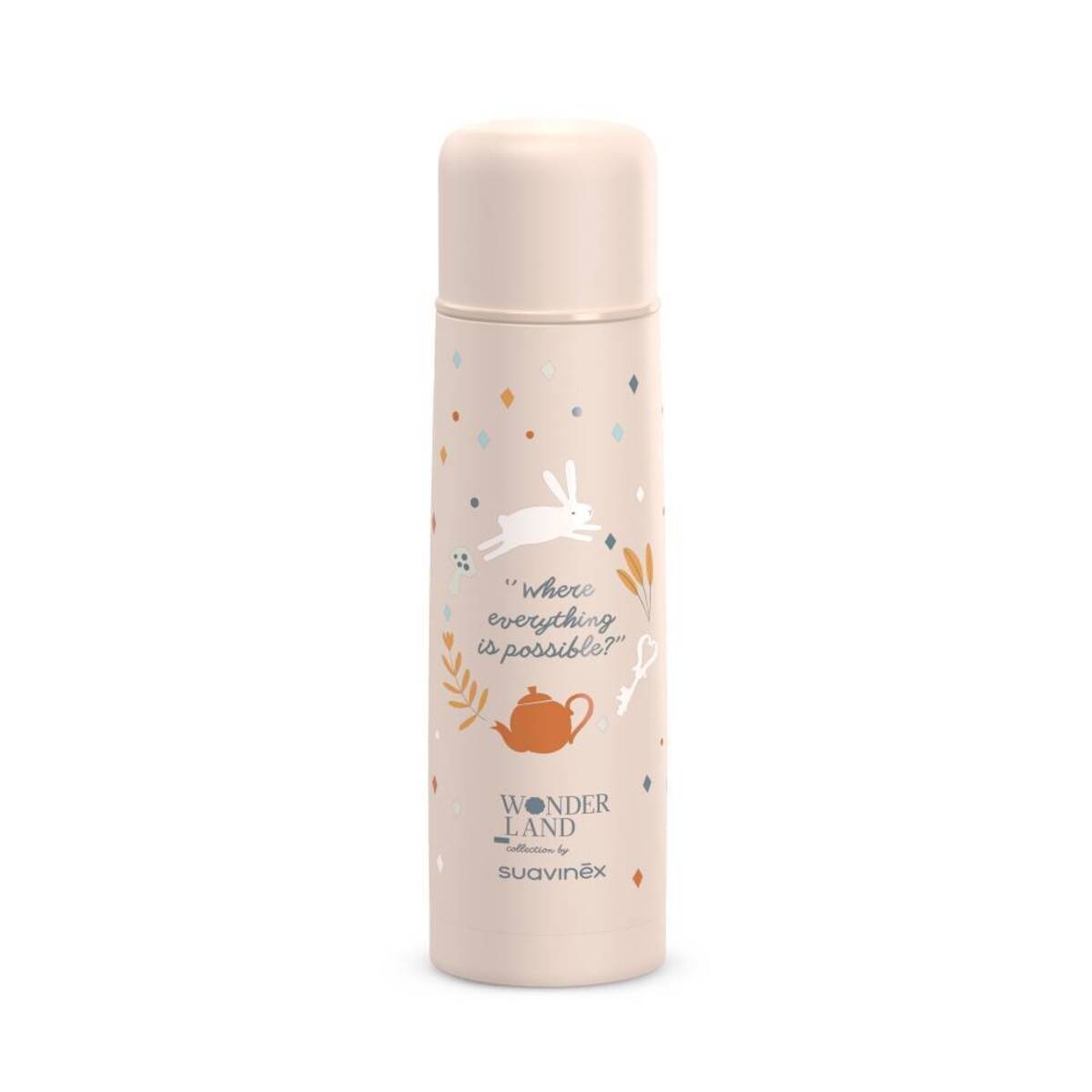 Термос для напитков Suavinex Wonderland помогает сохранить температуру горячих и холодных напитков в течение нескольких часов. Он полностью герметичен и выполнен из нержавеющей стали внутри.
